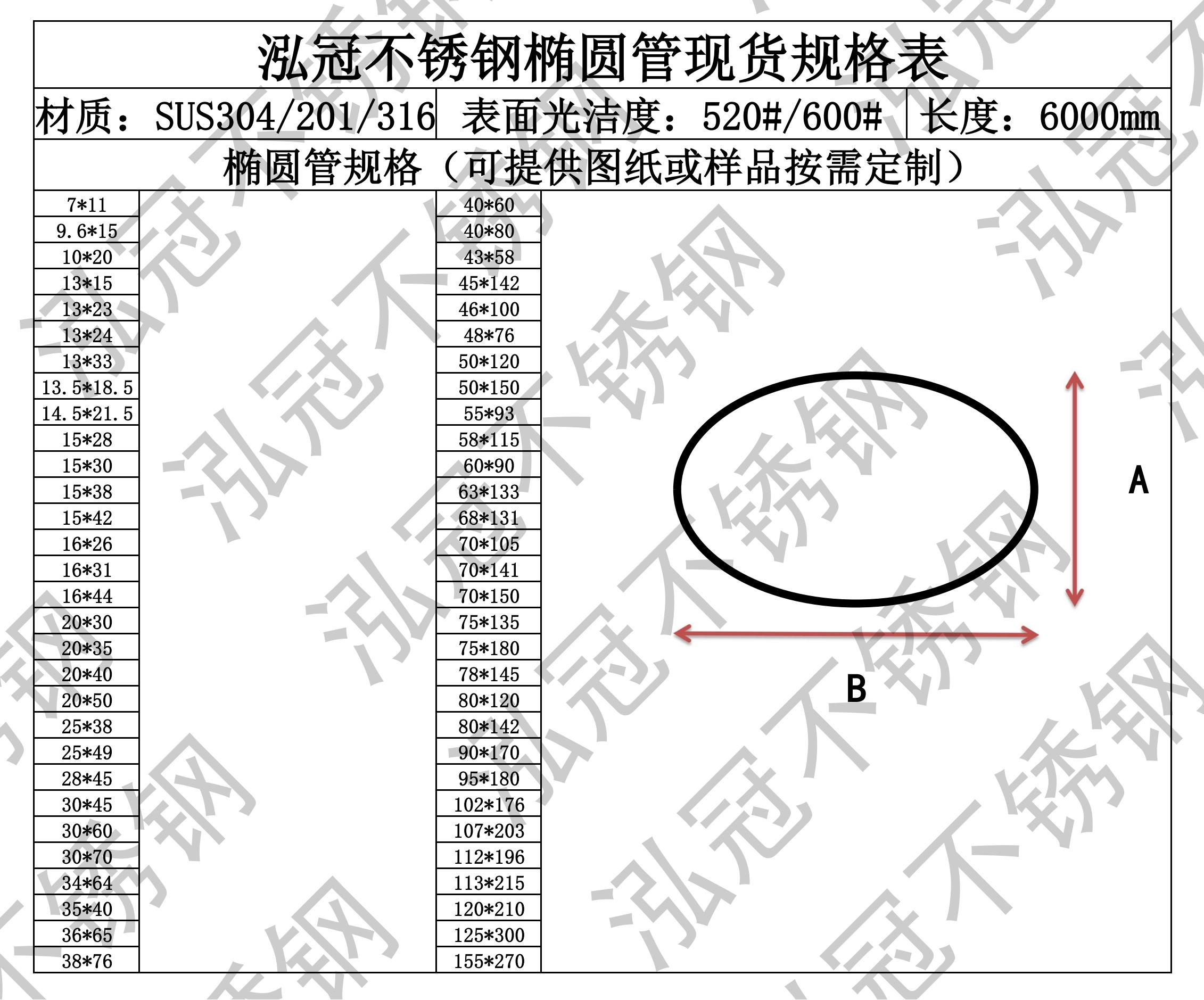 泓冠不銹鋼橢圓管現(xiàn)貨規(guī)格表